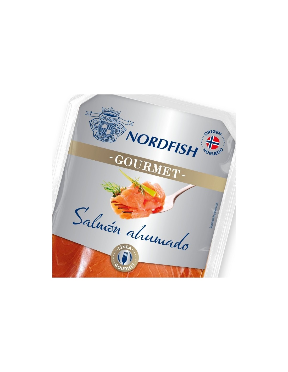 La joya de las aguas frías de Noruega en tu mesa. Nuestro Salmón Ahumado destaca por su extraordinario veteado, que le confiere una textura fundente y sedosa. Ahumado lentamente de forma artesanal con maderas nobles, ofrece un equilibrio perfecto entre el sabor natural del mar y un humo sutil y elegante.